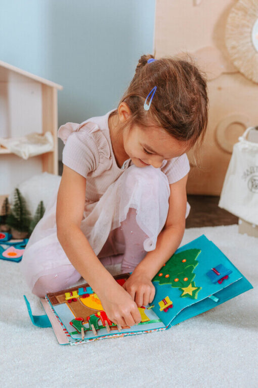 Il libro silenzioso è fatto a mano e progettato pedagogicamente. Le pagine sono rimovibili, possono essere liberamente spostate tra loro o divise tra i fratelli.