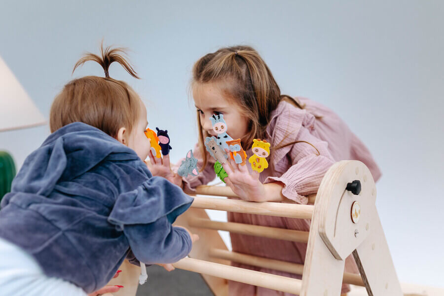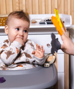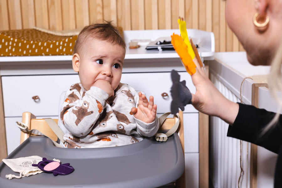 Quando il bambino cresce, uno dei suoi giochi preferiti è sicuramente infilare le dita nelle marionette da solo. Sono motivati dal desiderio di controllare le marionette autonomamente e così le infilano sulle dita. Una volta che le marionette sono sulle dita, inizia il vero divertimento verbale, quando l’immaginazione dei bambini prende il sopravvento. Creano rapidamente diverse storie e ci portano nel loro mondo delle fiabe. È consigliabile unirsi a loro durante il gioco.