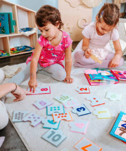 Addizione e sottrazione: Disponi le coppie di puzzle sulla superficie. Poi, con il conteggio dei bottoni, il bambino può sommare i numeri. È importante che metta insieme le coppie corrispondenti, sommi i numeri e dica il risultato. Ripeti l’esercizio per la sottrazione, assicurandoti che il primo numero (il minuendo) sia maggiore del secondo (il sottraendo).